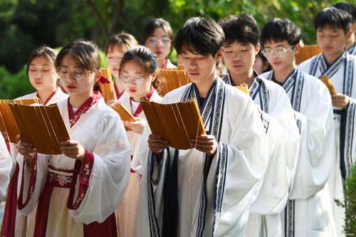 大學(xué)生穿古裝誦讀迎接“世界讀書日”