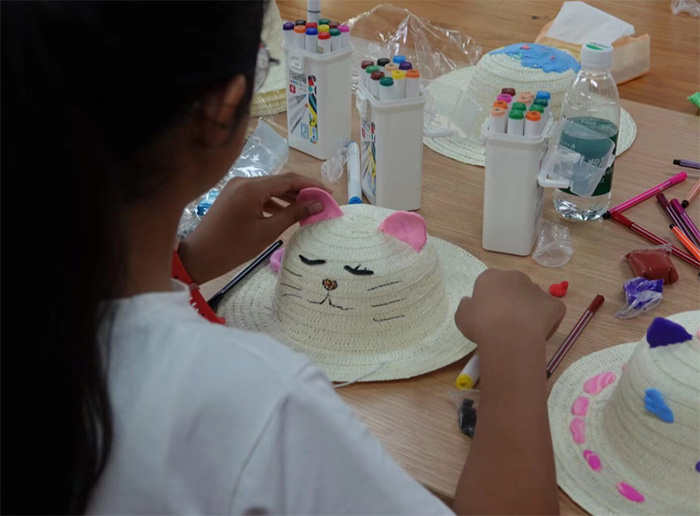 知識講解后,手工課堂熱鬧開啟。小朋友們拿起水彩筆和超輕粘土,發(fā)揮想象力為草帽設(shè)計獨特裝飾——有的畫出金黃的麥穗,有的捏出可愛的小動物,有的用色彩勾勒出田野風光,一個個普通的草帽變成了充滿農(nóng)耕元素的“專屬藝術(shù)品”。動手過程中,孩子們不僅鍛煉了創(chuàng)造力,更在創(chuàng)作中加深了對農(nóng)耕文化的理解。