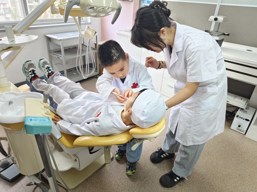 角色扮演寓教于樂,小小牙醫上崗體驗 為加深孩子們的理解,志愿者組織了一場“牙醫職業體驗”游戲。小朋友們兩兩一組,在專業醫護人員的指導下,輪流扮演“小牙醫”和“患者”,使用口腔檢查鏡互相觀察牙齒狀況。通過實踐,孩子們不僅消除了對看牙醫的恐懼,更學會了如何關注自己和他人的口腔健康。