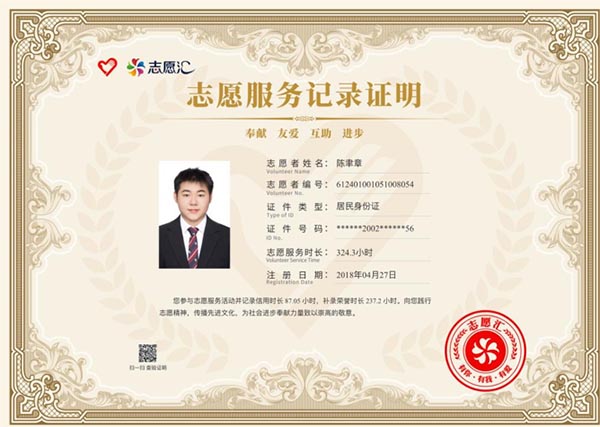 “太山不讓土壤,故能成其大;河海不擇細(xì)流,故能就其深”。在志愿服員的工作中,他與他的伙伴們認(rèn)為,一個(gè)人的力量是有限的,只有全社會(huì)融入其中,人人參與,個(gè)個(gè)奉獻(xiàn),志愿服務(wù)的天空,將會(huì)更加璀璨耀眼!兩年來(lái),他在志愿服務(wù)中學(xué)習(xí),在志愿服務(wù)學(xué)習(xí)中成長(zhǎng),在志愿服務(wù)成長(zhǎng)中實(shí)踐,在志愿服務(wù)實(shí)踐中收獲。他山之石,可以攻玉。志愿服務(wù)大有可為!未來(lái),他將繼續(xù)秉持“奉獻(xiàn)、友愛(ài)、互助、進(jìn)步”的志愿服務(wù)精神,用守初心,戮力同行;以志為愿,筑青春夢(mèng)想!