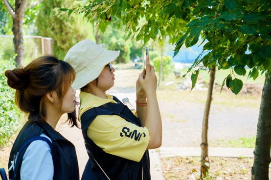 圖為長安大學赴山東淄博“探數(shù)字賦能,助鄉(xiāng)村振興”社會實踐團隊近距離觀察植物生長