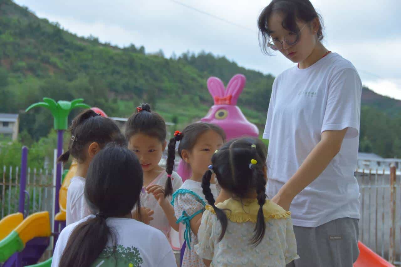 圖為隊員在和孩子們一起做小游戲。 卜祥吉 供圖