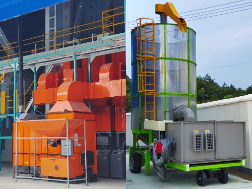 糧食烘干中心的固定式(左)和移動式(右)智能烘干機
