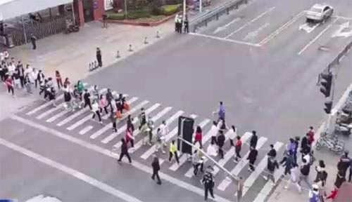 這是復旦大學學生排隊穿過馬路通向另一個校區(qū)的場景,在志愿者的安排下,學生們井然有序地通過臨時通道,前往食堂就餐。據(jù)師生介紹,3月13日起,復旦大學開啟封閉式管理,不同校區(qū)會定點定時開設臨時通道,保障學生點對點到校本部就餐,而筑起這個通道的就是來自復旦大學學生黨員服務隊的志愿者們。