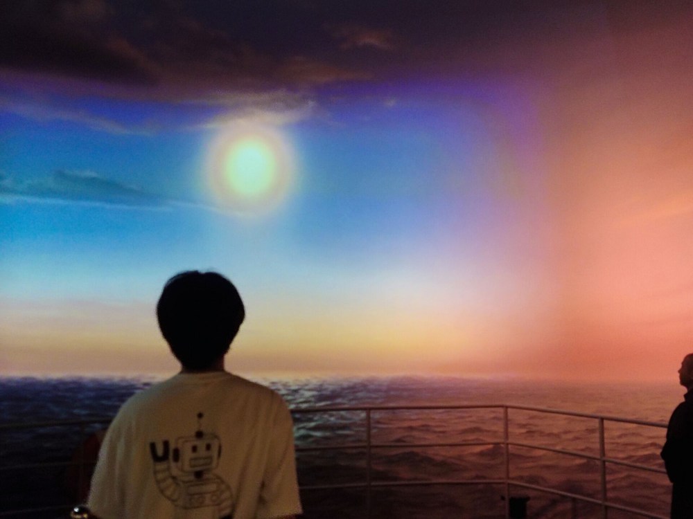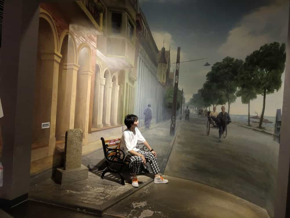 出了紀念館大門,正對著的就是博物館。在博物館內,隊員們注意到一艘模型船,船的前方投影出海上初日的輪廓,隊長莫焱欽感慨,“看著眼前的景象,回顧今天的所思所悟,真有種豪情涌上心頭,我想要向先輩們學習,在新時代做出一番事業,為祖國的強盛貢獻自己的力量”。是的。當我剛剛坐在那副民國街頭圖畫邊時,我不禁問自己,如果我身在民國時代,我會怎么做?我沒有得到答案。但是我想從現在開始努力學習各種技能,為服務祖國和人民積蓄力量。“隊員彭柯皓補充道。