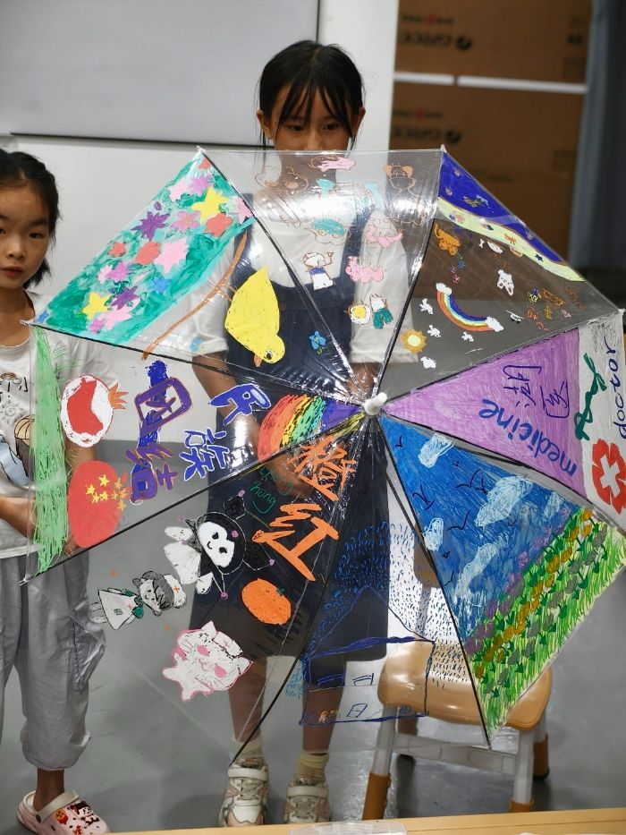 圖為隊(duì)員與小朋友們共同創(chuàng)作的雨傘。吳京橋 供圖