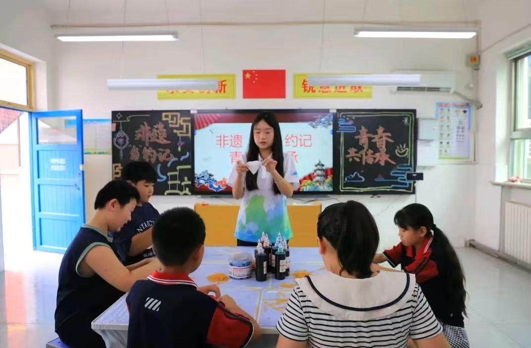 為給鄉村兒童的暑期生活增添一抹傳統文化的色彩,我系暑期社會實踐團提前學習相關非遺技藝,精心設計了扎染、剪紙、拓印等充滿巧思的小游戲。