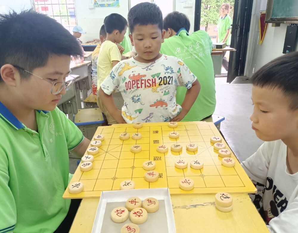 圖為志愿隊的小王老師在象棋課上與學生對弈。湖北醫藥學院 李夢涵 供圖