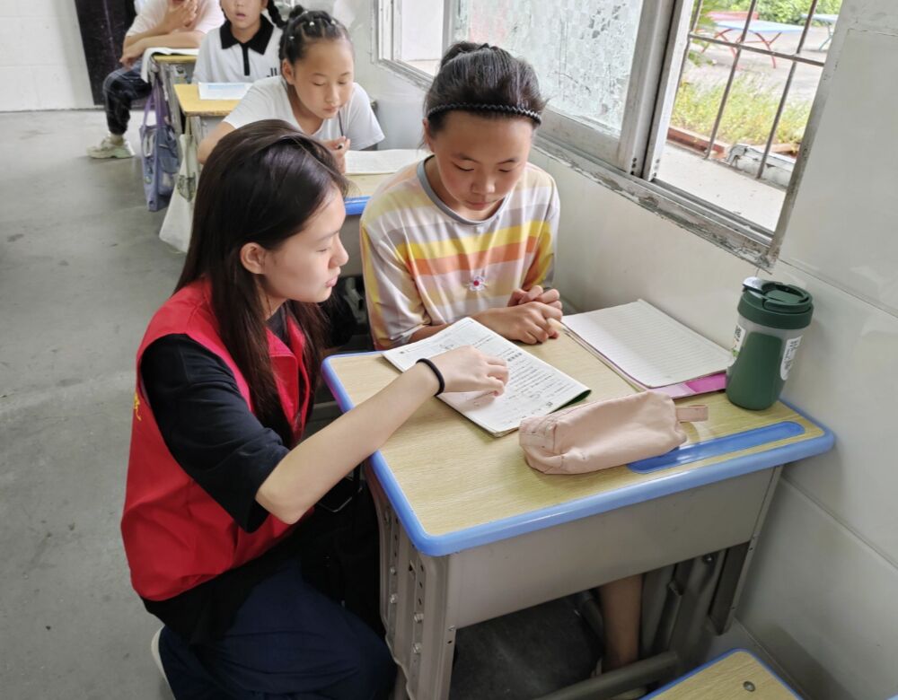 圖為志愿隊的小羅老師為學生做作業指導。湖北醫藥學院 耿藝 供圖