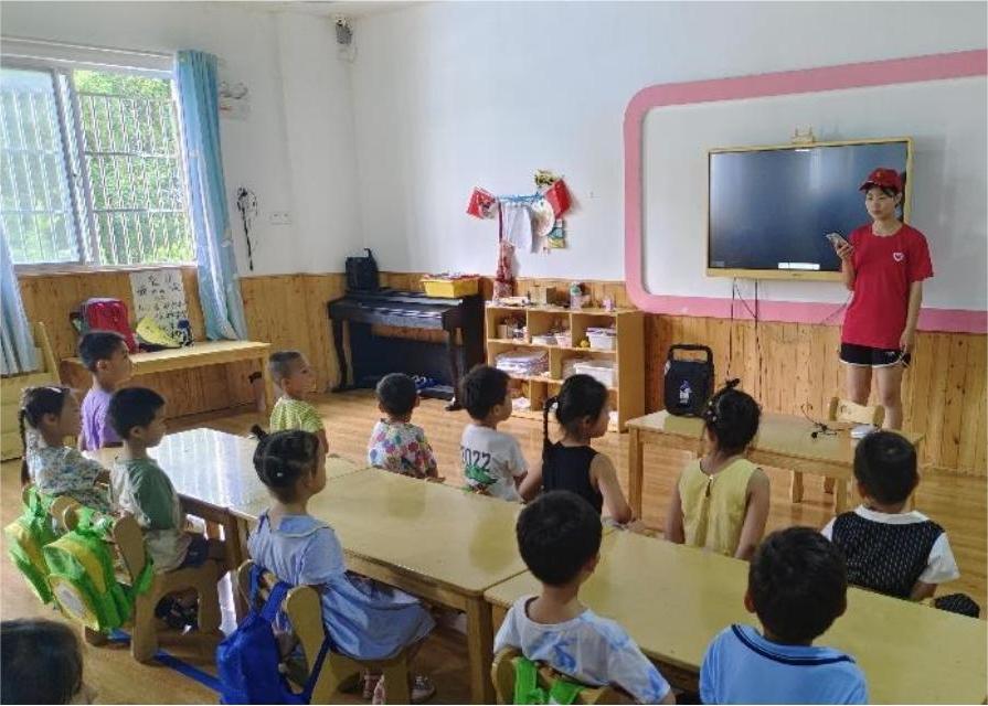 圖為實踐隊員向黃墩鎮晨光幼兒園師生介紹圓夢項目 通訊員 董子文 供圖