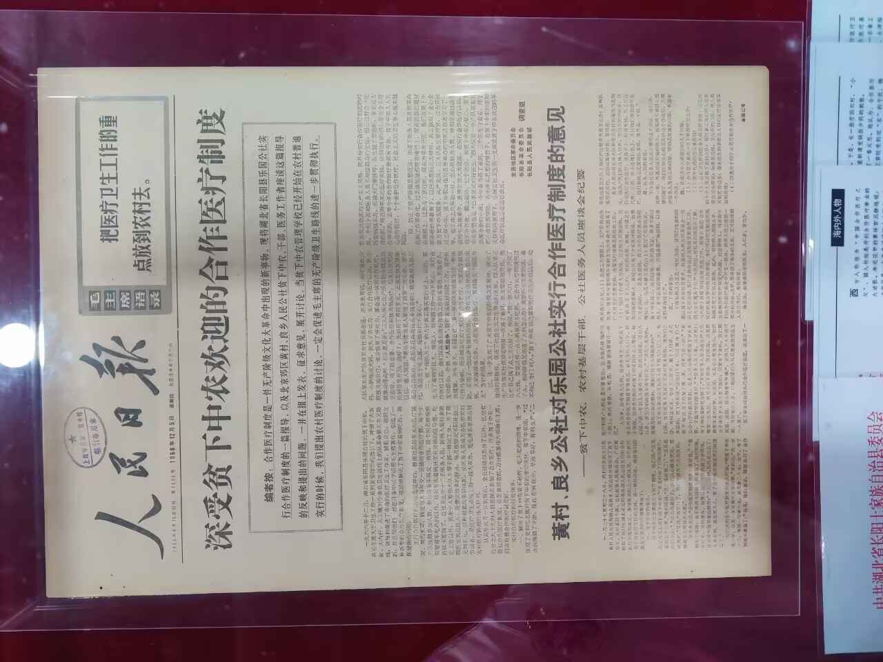 1968年,中央有關部門專門就該報道進行核實,在黨中央高度重視下,同年12月5日,一篇題為《深受貧下中農歡迎的合作醫療制度》文章及《黃村、良鄉公社對樂園公社實行合作醫療制度的意見》刊登在《人民日報》頭版頭條。