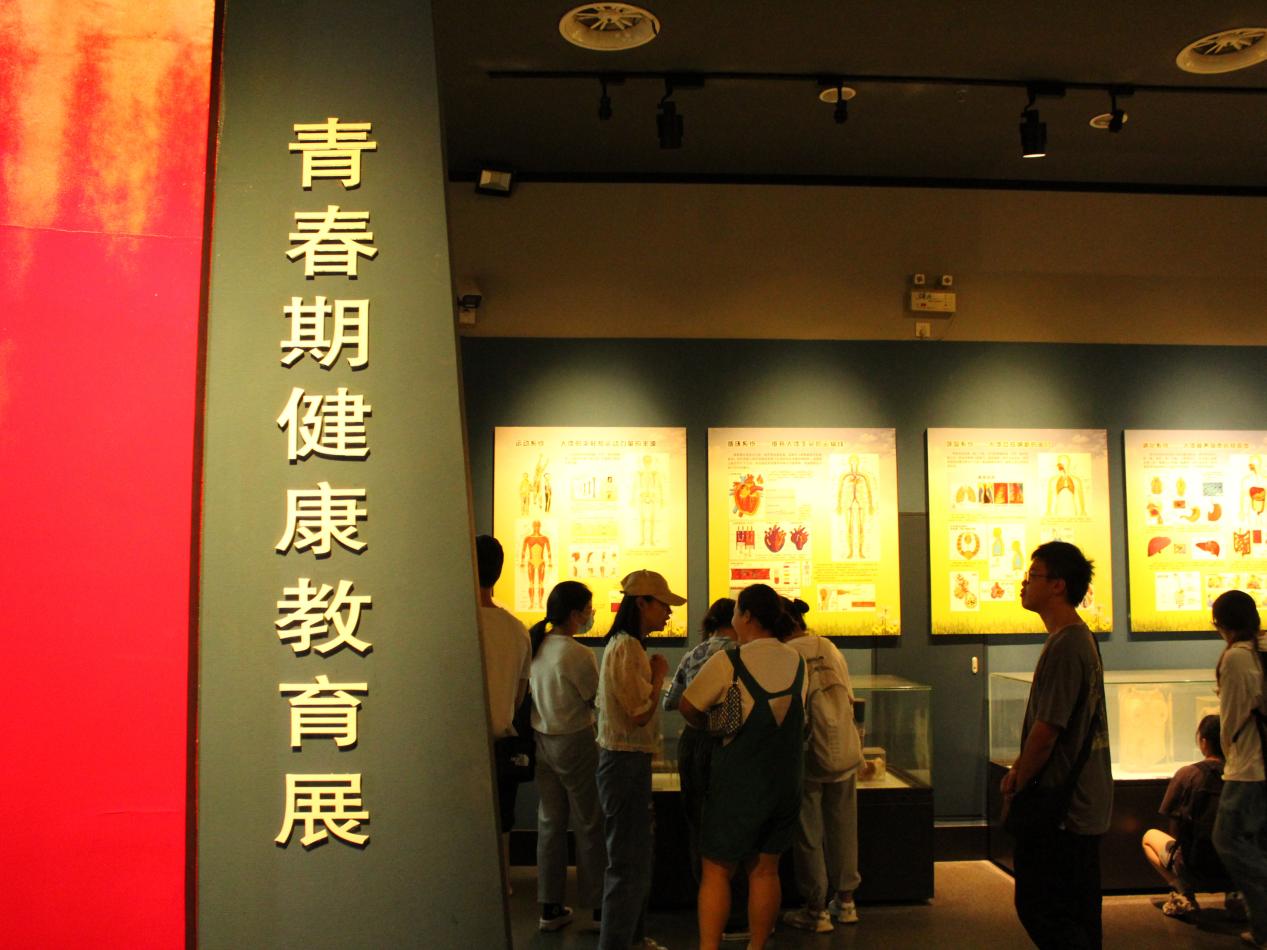 作為醫(yī)學生,同學們對人體結(jié)構(gòu)有著濃厚的興趣。在博物館的二層,有一個專門展示人體標本的青春教育展覽館,我們步入該館,立刻被眼前的場景所吸引。在這里,關(guān)于性的各種疑問得到了解答,同學們可以自行瀏覽壁畫,亦可通過機器操作來解惑。沒有避而不談,沒有“性可恥”,這些問題值得家長孩子直面、認識和理解。
