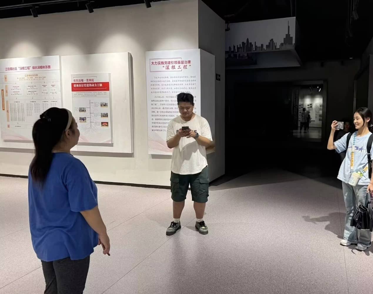 在社會進展飛速、娛樂項目多元的當下,漢繡的傳承與發展迎來了前所未有的挑戰:從前車馬很慢,一幅漢繡制畫需要數月累年的功夫;而今科技發達,機械代工不過數小時爾爾。曾經一朵刺繡的蓮花便是樸素年代最亮眼的一抹色彩,而今在燈紅酒綠與霓虹光耀之下,再精致的刺繡都淡了光澤、失了色彩。曾經在布衣布鞋上刺繡便是人們最大的樂趣,而今一塊小小的電子屏便能一再刺激人們的腎上腺素閾值,沉浸在電子產品帶來的新鮮感中。人們更愿意享受電子產品帶來的即時快感,鮮有人再一針一線地縫補那歲月悠悠的古樸風韻。今時不同往日,漢繡的傳承與發展岌岌可危。好在還有幾處集合地,讓不同的漢繡工作室聚于一處,同時依托現代通訊不斷發揚傳承,江欣苑便是其中之一——打造了遠近聞名的漢繡根據地,有穩定的工作室與經驗豐富的漢繡老師,有介紹歷史的博物館與惠民的黨政服務中心。江欣苑盡自己所能為漢繡提供了宜居之地,讓漢繡雖瀕危但不至絕種,同時有了強大的后盾與穩定的基礎去發揚漢繡文化。據實踐小隊調查,工作室的漢繡老師大部分開通了不同的社交媒體,如抖音、小紅書等。老師們會在社交媒體上展示自己的作品,同時愛好者們也會通過社交媒體聯系不同的老師,滿足參觀漢繡、體驗漢繡的愿望。在社區的幫助下,漢繡的發展也逐步穩健,重現往日之輝煌指日可待。