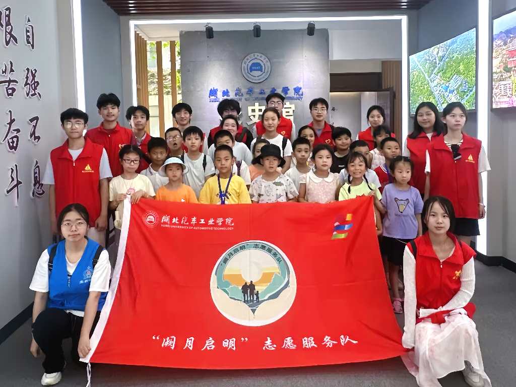 同時,志愿者們也帶著孩子們一起走進湖北汽車工業學院的校史館,開啟了一段探索學校歷史文化的奇妙之旅。講解員用生動有趣的語言,帶著孩子們逐一參觀了校史館的各個展區,讓孩子們感受到了學校歷史的厚重和文化的底蘊,了解了湖北汽車工業學院的歷史和文化,孩子們也明白要珍惜現在的學習機會,努力學習、不斷進步。