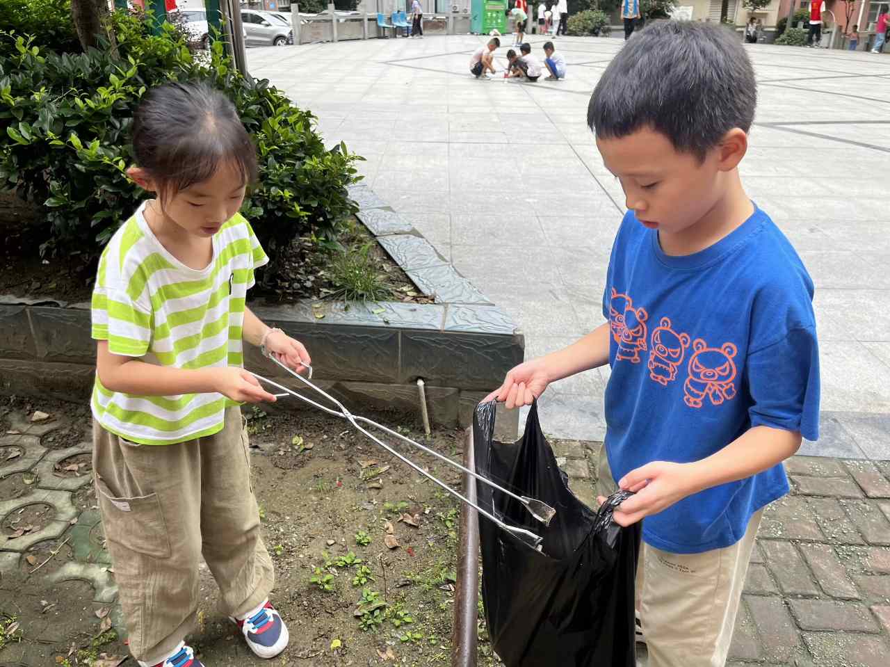 圖為小朋友們踐行環保外出撿垃圾。