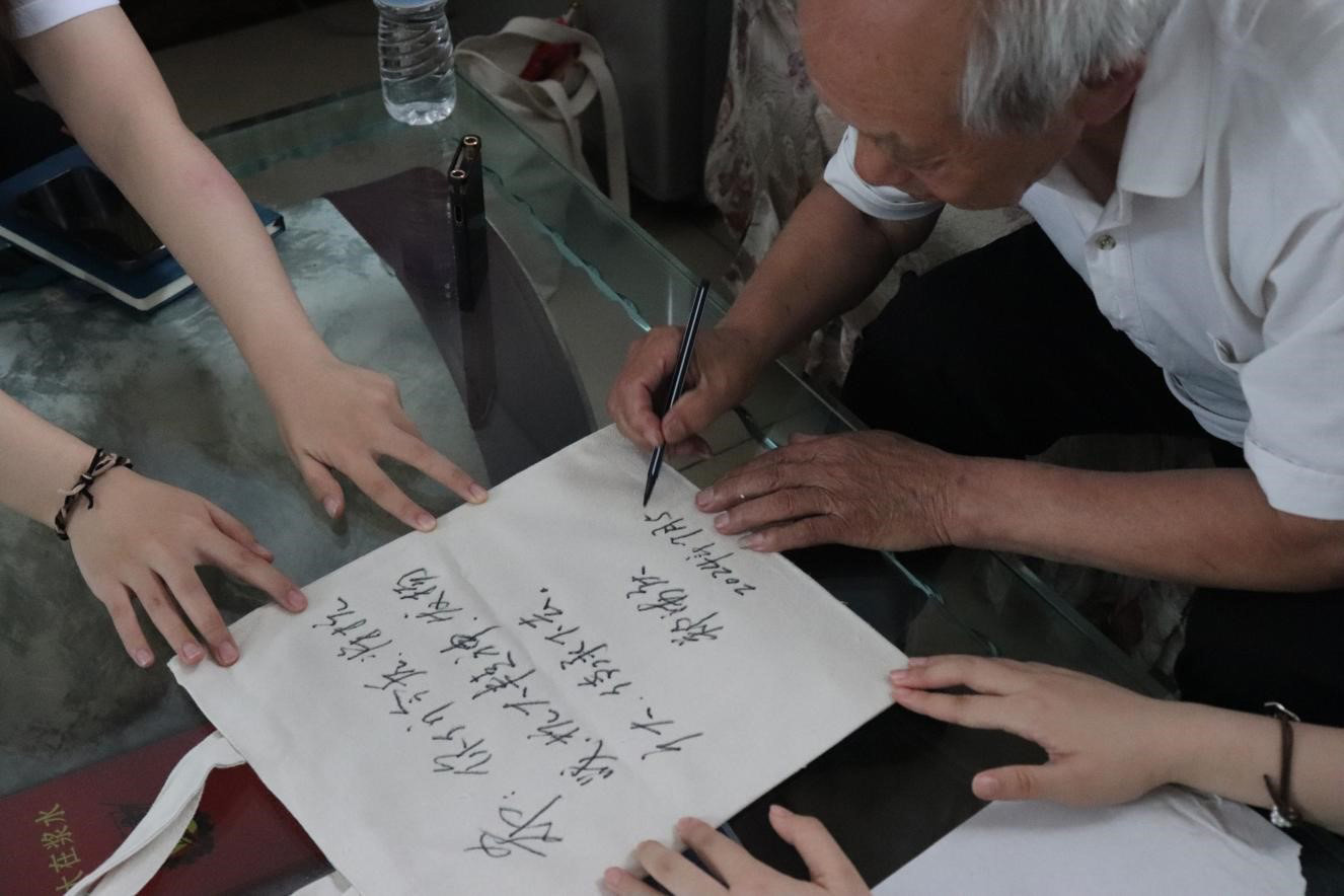 漿水中學(xué)退休教師李庚臣老人帶領(lǐng)實踐團參觀了洪學(xué)智將軍故居、聶鳳智將軍故居、太行中學(xué)衛(wèi)生所舊址和坡子峪村村史館。現(xiàn)場教學(xué)至動情處,老人忍不住落淚。他帶領(lǐng)大家唱完抗日軍政大學(xué)校歌,欣慰地表示,“革命江山代代傳,看到你們,我感覺后繼有人!”