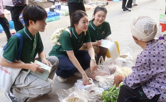 圖為服務隊成員在當地集市進行推普宣講 楊恒博 供圖