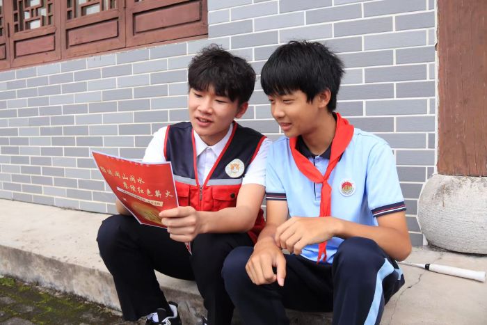 (圖為服務隊成員在古田片區弘揚愛國精神)